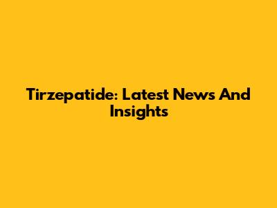 Tirzepatide: Latest News And Insights