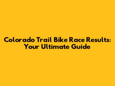 Colorado Trail Bike Race Results: Your Ultimate Guide