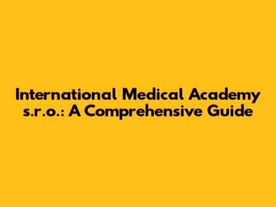 Hey guys! Welcome to a deep dive into the International Medical Academy s.r.o.! We're gonna break down everything you need to know about this academy, from what it is to what it offers, and why it might be the perfect stepping stone for your medical career. Buckle up, because we're about to embark on a journey through the world of medical education and discover how this academy can shape your future.