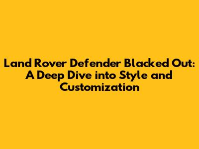 Land Rover Defender Blacked Out: Style, Customization, & More