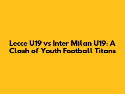 Lecce U19 Vs Inter Milan U19: Match Analysis & Predictions