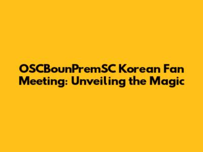 Hey guys! Are you ready for some serious excitement? We're diving headfirst into the OSCBounPremSC Korean Fan Meeting! This is your ultimate insider's guide to everything you need to know about this amazing event. Get ready to explore all the juicy details, from the confirmed dates and locations to the thrilling activities and exclusive goodies that await you. We'll also cover how to snag those coveted tickets and ensure you don't miss out on this unforgettable experience. So, buckle up, because we're about to embark on a journey filled with fun, excitement, and all things OSCBounPremSC! This is more than just a fan meeting; it's a celebration of love, support, and the special connection between the stars and their dedicated fans. Get ready to witness a whirlwind of talent, charisma, and unforgettable moments that will leave you wanting more. It's time to mark your calendars, gather your friends, and prepare for an adventure you won't soon forget! The anticipation is building, and the excitement is palpable. Let's explore everything related to this incredible event and make sure you're fully prepared to make the most of it. Are you as hyped as we are? Let's go!