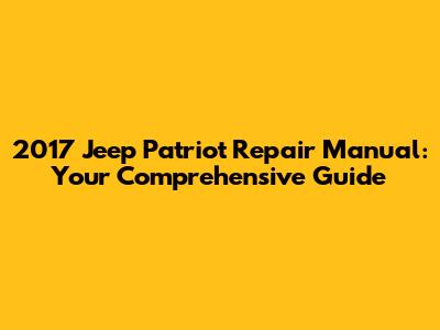 Hey there, Jeep enthusiasts! Thinking about diving into some DIY repairs for your trusty 2017 Jeep Patriot? Awesome! Having a 2017 Jeep Patriot repair manual is like having a secret weapon in your garage. It's your go-to source for everything from basic maintenance to tackling more complex issues. Forget blindly searching online or relying solely on a mechanic – this manual puts the power in your hands. This article will be your ultimate companion, guiding you through everything you need to know about your 2017 Jeep Patriot repair manual, ensuring you're well-equipped to keep your Patriot running smoothly and efficiently. We'll explore why a repair manual is essential, what it typically includes, and how it can save you time and money. Plus, we'll discuss the different types of manuals available and where to find the perfect one for your needs. So, buckle up, grab your tools, and let's get started on this journey of automotive empowerment!