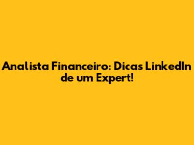 Analista Financeiro: Dicas LinkedIn De Um Expert!