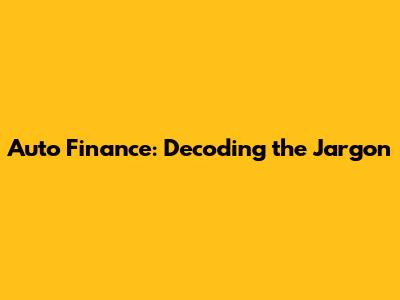 Auto Finance: Decoding The Jargon