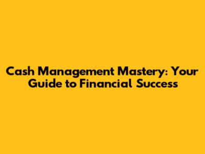 Cash Management Mastery: Your Guide To Financial Success
