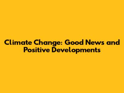 Climate Change: Good News And Positive Developments