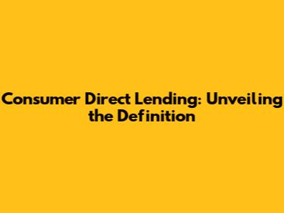 What Exactly Is Consumer Direct Lending?