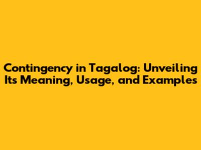 Contingency In Tagalog: Meaning, Usage, And Examples