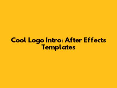 Cool Logo Intro: After Effects Templates
