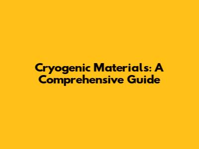 Cryogenic Materials: A Comprehensive Guide