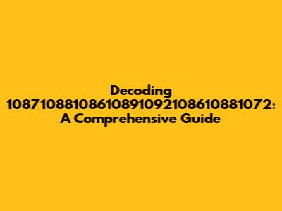 Decoding 10871088108610891092108610881072: A Comprehensive Guide