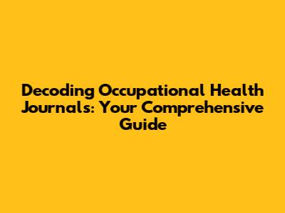 Decoding Occupational Health Journals: Your Comprehensive Guide
