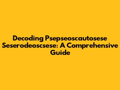 Decoding Psepseoscautosese Seserodeoscsese: A Comprehensive Guide
