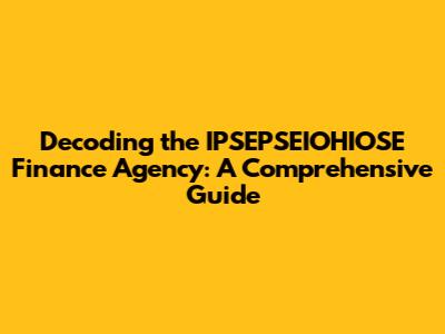 Hey guys! Ever heard of the IPSEPSEIOHIOSE Finance Agency? It's a name that might sound a bit like a tongue twister, but it represents a real entity, and understanding it can be super important, especially if you're navigating the world of finance. We're diving deep into what this agency is all about, what it does, and why it matters to you. So, buckle up! We're about to embark on a journey through the ins and outs of this financial powerhouse. Let's get started and unpack this complex topic together.