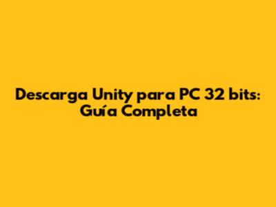 Descarga Unity Para PC 32 Bits: Guía Completa