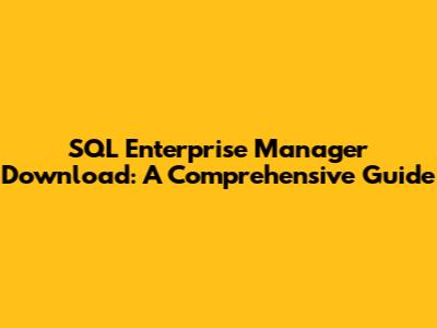 Download SQL Enterprise Manager: A Comprehensive Guide
