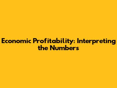 Economic Profitability: Interpreting The Numbers
