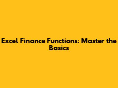 Excel Finance Functions: Master The Basics