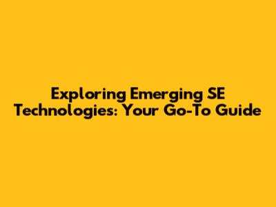 Exploring Emerging SE Technologies: Your Go-To Guide