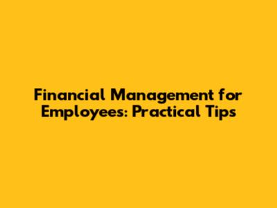 Financial Management For Employees: Practical Tips
