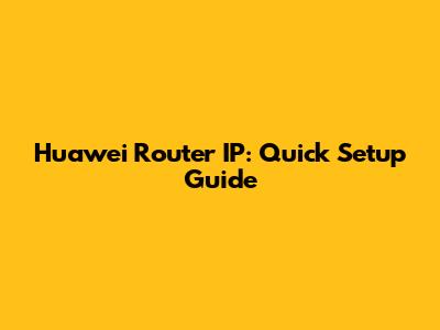 Huawei Router IP: Quick Setup Guide