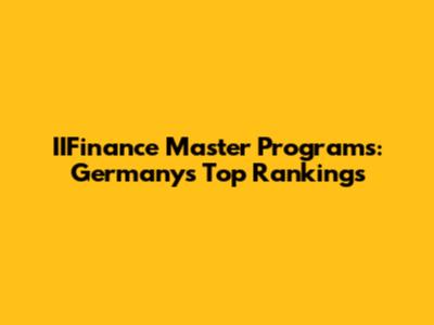 IIFinance Master Programs: Germany's Top Rankings