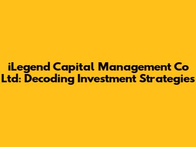 Hey guys! Let's dive into the world of finance and take a closer look at iLegend Capital Management Co Ltd. This isn't just some random company; it's a player in the investment game, and understanding what they do can give us some serious insights. We'll break down their strategies, look at their investment philosophy, and see what makes them tick. Ready to get started?