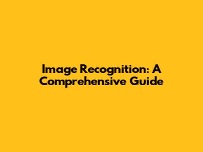 Image Recognition: A Comprehensive Guide