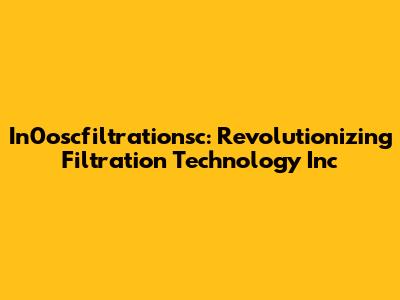 In0oscfiltrationsc: Revolutionizing Filtration Tech