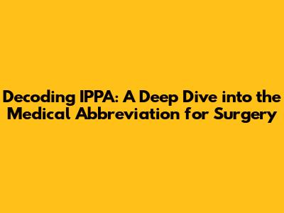IPPA: Decoding The Medical Abbreviation For Surgery
