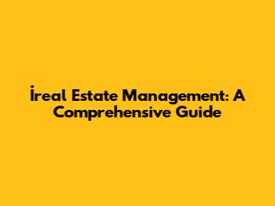 İreal Estate Management: A Comprehensive Guide