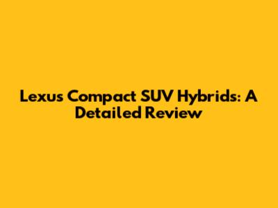 Lexus Compact SUV Hybrids: A Detailed Review