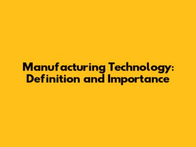 Manufacturing Technology: Definition And Importance