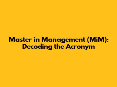 Master In Management (MiM): Decoding The Acronym