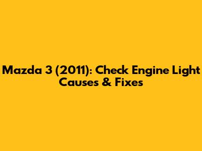 Mazda 3 (2011): Check Engine Light Causes & Fixes