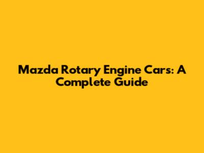Mazda Rotary Engine Cars: A Complete Guide