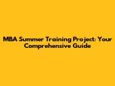 MBA Summer Training Project: Your Comprehensive Guide
