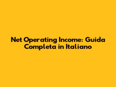 Net Operating Income: Guida Completa In Italiano
