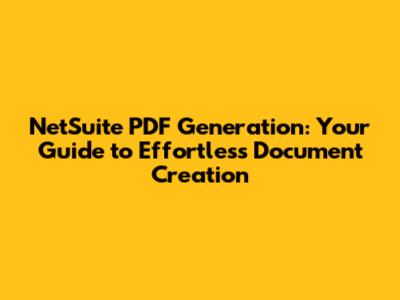 NetSuite PDF Generation: Your Guide To Effortless Document Creation