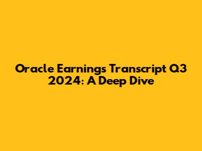 Hey guys! Let's break down the Oracle Q3 2024 earnings transcript. We're going to dive deep into what was said, what it means, and why it matters. Whether you're an investor, tech enthusiast, or just curious, this is your go-to place for all the juicy details.