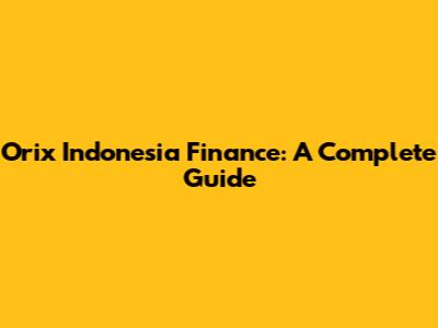 Orix Indonesia Finance: A Complete Guide