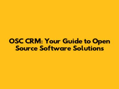 OSC CRM: Your Guide To Open Source Software Solutions