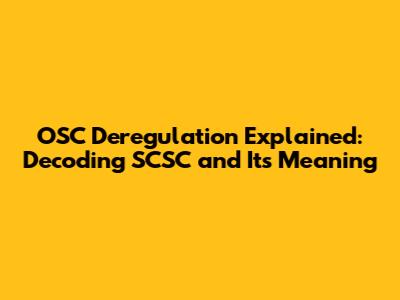 OSC Deregulation Explained: Decoding SCSC And Its Meaning