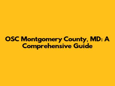 OSC Montgomery County, MD: A Comprehensive Guide