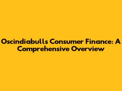 Oscindiabulls Consumer Finance: A Comprehensive Overview