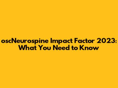 OscNeurospine Impact Factor 2023: What You Need To Know