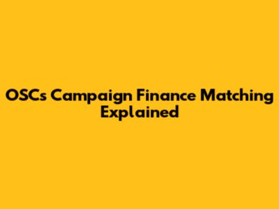 OSC's Campaign Finance Matching Explained
