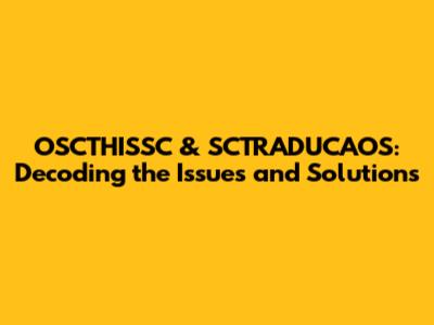 OSCTHISSC & SCTRADUCAOS: Decoding The Issues And Solutions