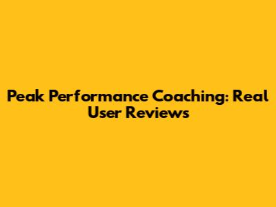 Peak Performance Coaching: Real User Reviews